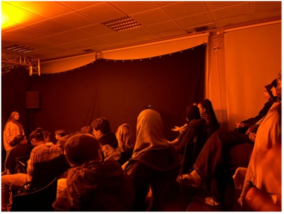 Chaque scénette ouvre sur une discussion collective animée par Camélia. Les spectateurs sont invités à réagir, commenter et proposer des solutions aux problèmes soulevés. Ce moment d’échange se déroule de manière dynamique : les comédiens reviennent sur scène tout en gardant leur rôle, pour dialoguer avec le public, contredire certains points, approfondir d’autres, et relancer le débat.