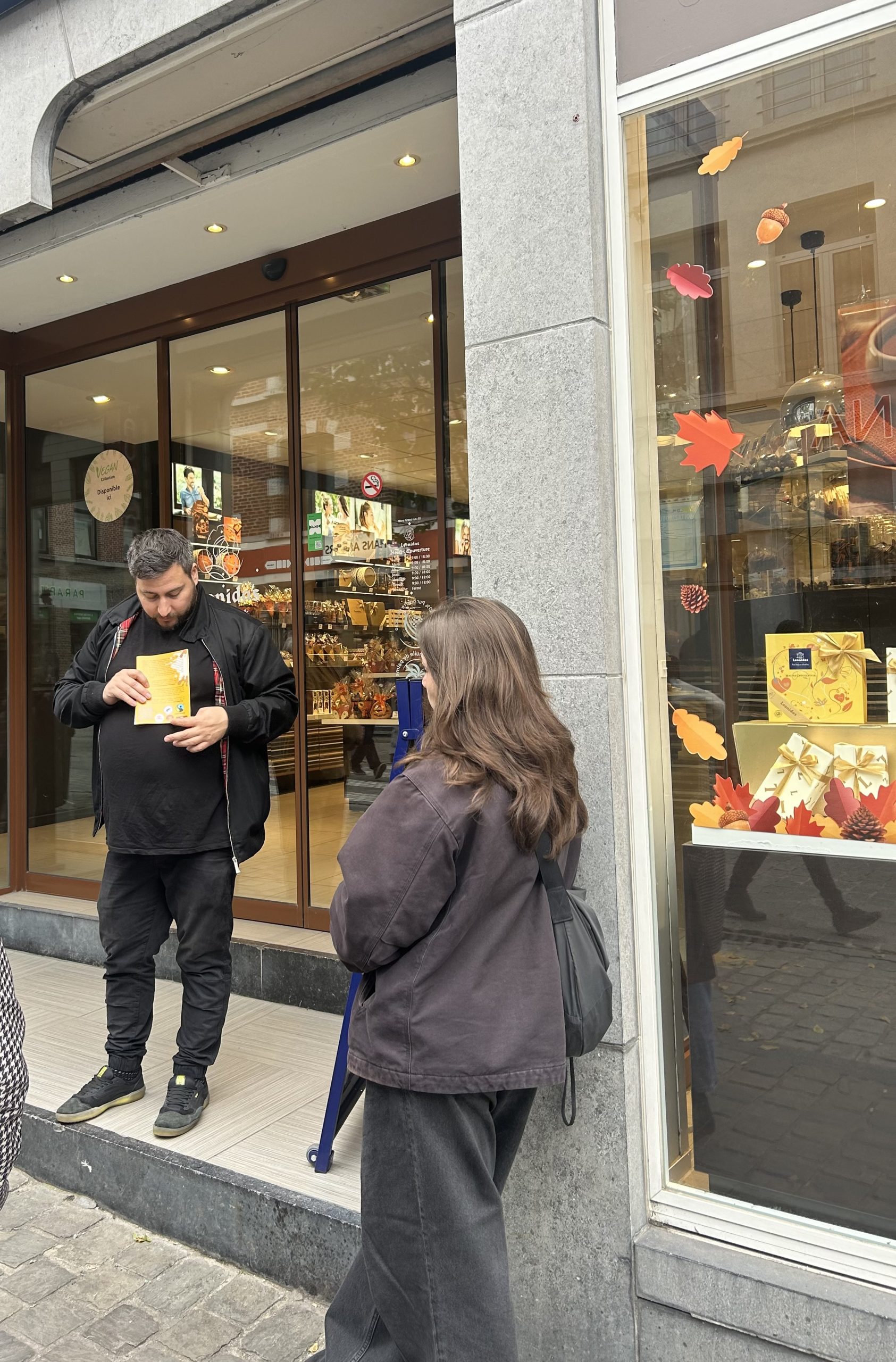 En parcourant Mons et en observant des objets du quotidien, du café à la bière, en passant par les vêtements ou les produits alimentaires, les participants ont été invités à réfléchir aux liens invisibles qui relient nos habitudes de consommation aux dynamiques de dominations « indirectes » liées à l’héritage colonial. Guidés par Maxime, animateur de l’association, les participants portent un autre regard sur ces lieux du quotidien : celui des inégalités en matière de production et de consommation. Cette visite est marquée par une volonté de révéler le fonctionnement des circuits longs et les mécaniques du système économique actuel, tout en abordant ces sujets sans culpabilisation. Au long du parcours, les participants ont pu feuilleter un fascicule rédigé par Le Village du Monde, apportant des informations, des chiffres et des éléments historiques pour nourrir les échanges.