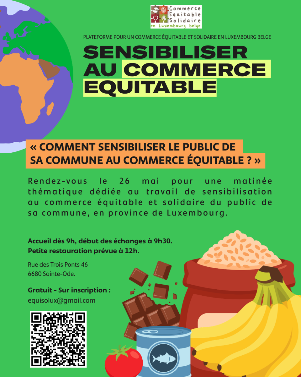 Rendez-vous en mai 2026 pour une matinée thématique dédiée au travail de sensibilisation au commerce équitable et solidaire du public de sa commune, en province de Luxembourg.